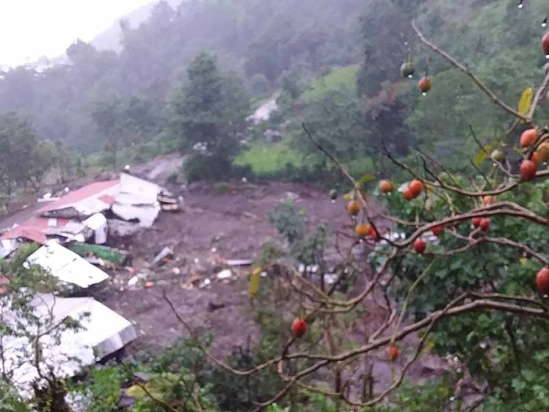 UNIÓN JUÁREZ.- El desgajamiento de un cerro en el Cantón Chiquihuite, municipio de Unión Juárez, Chiapas, dejó un muerto y un desaparecido, además de dos viviendas destruídas
