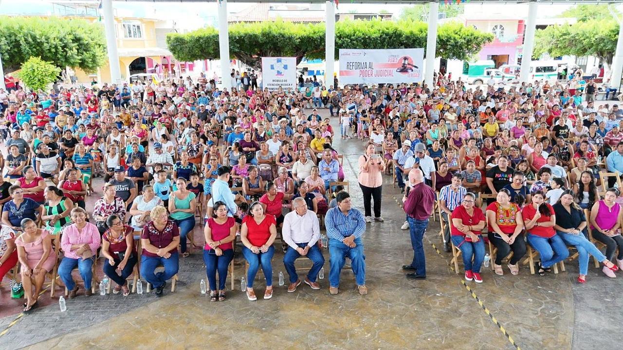 En la explanada del parque central, con la presencia de hombres y mujeres de este territorio, el legislador electo por Morena, Cruz Castellanos, acompañado del consejero estatal de Morena, Enrique Aguilar Martínez, destacó que de las 20 Reformas impulsadas por Andrés Manuel López Obrador, la que compete al Poder Judicial es una de las más complejas por todo lo que conlleva, pues se trata de devolver la confianza al pueblo donde los jueces, magistrados y ministros sean electos por las y los mexicanos, así como disminuir sus sueldos para alcanzar la justicia social.